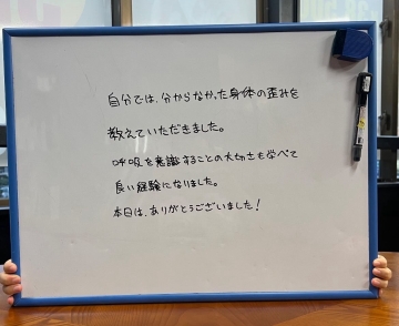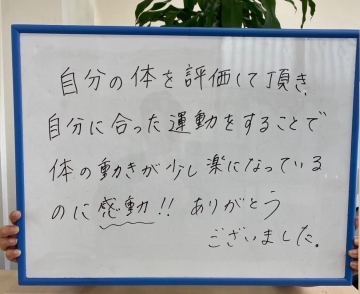 - 体の静的評価と動的評価を行い主訴に合わせたトレーニングの提案